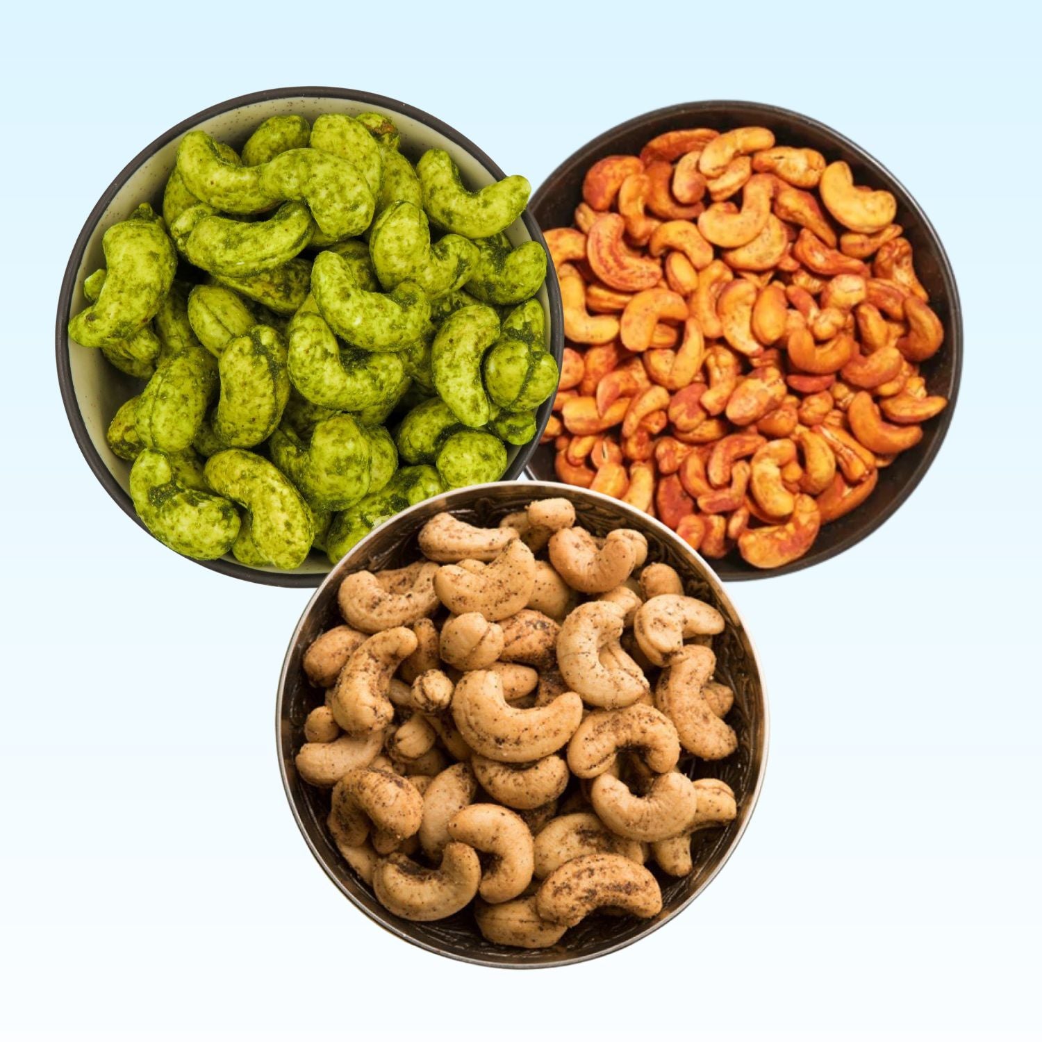 Pack of 5 Flavour Cashews (100g each- Peri Peri , Black Pepper, Mint, Chilly Garlic and 200g- Classic Salted)
