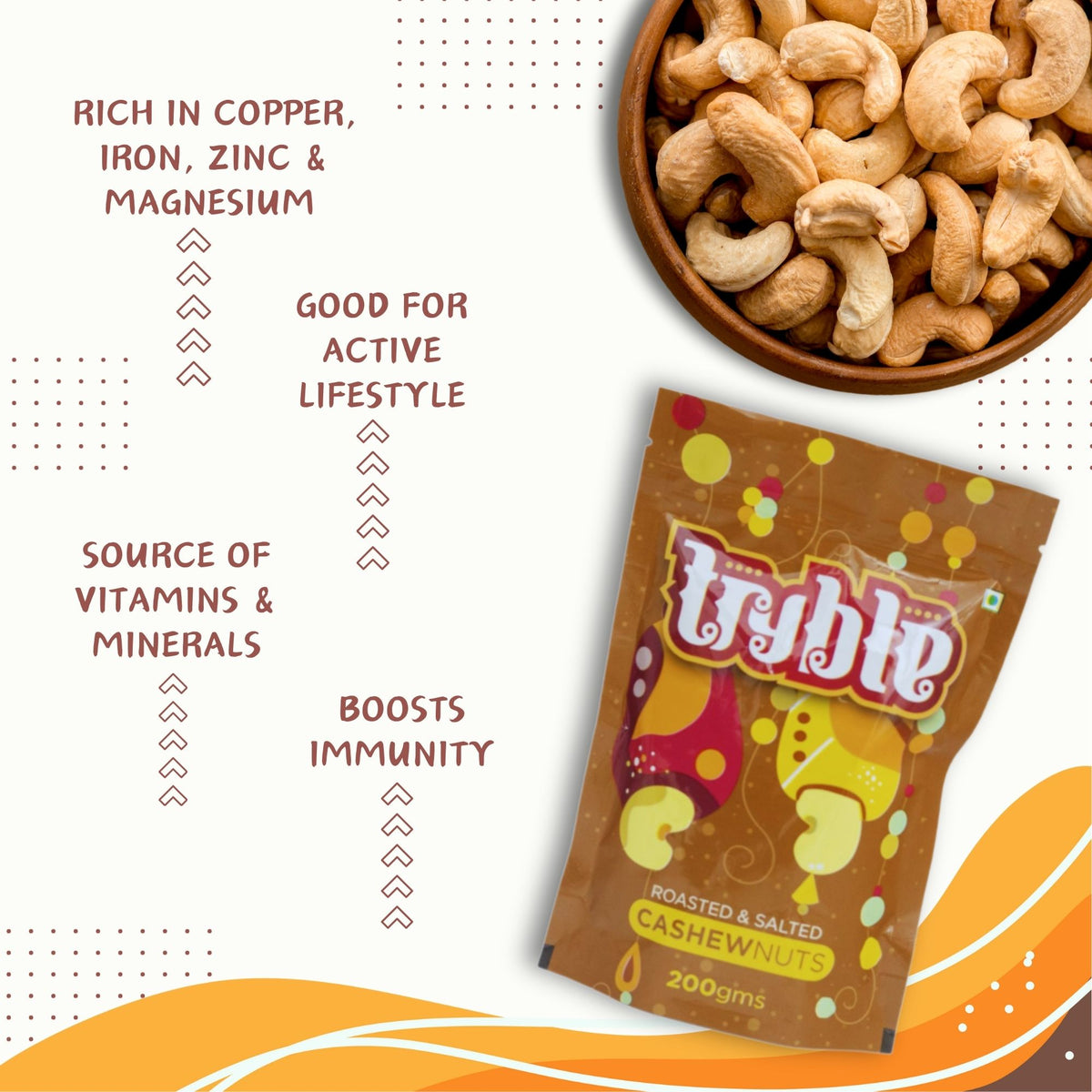 • Premium Roasted Cashews: Fresh, high-quality cashews roasted for the ideal balance of crunch and flavor.
