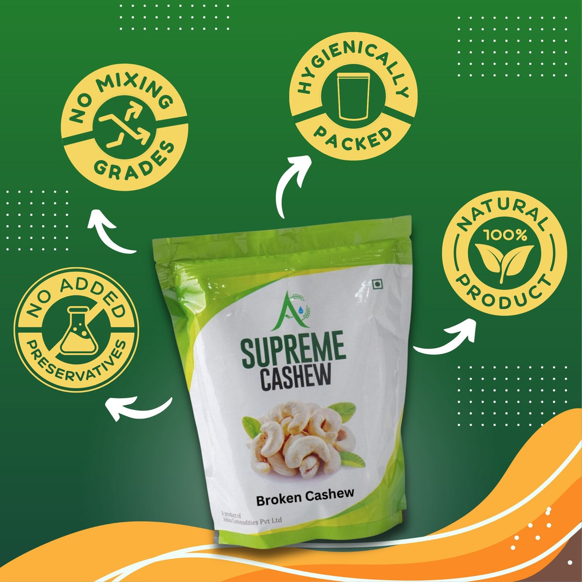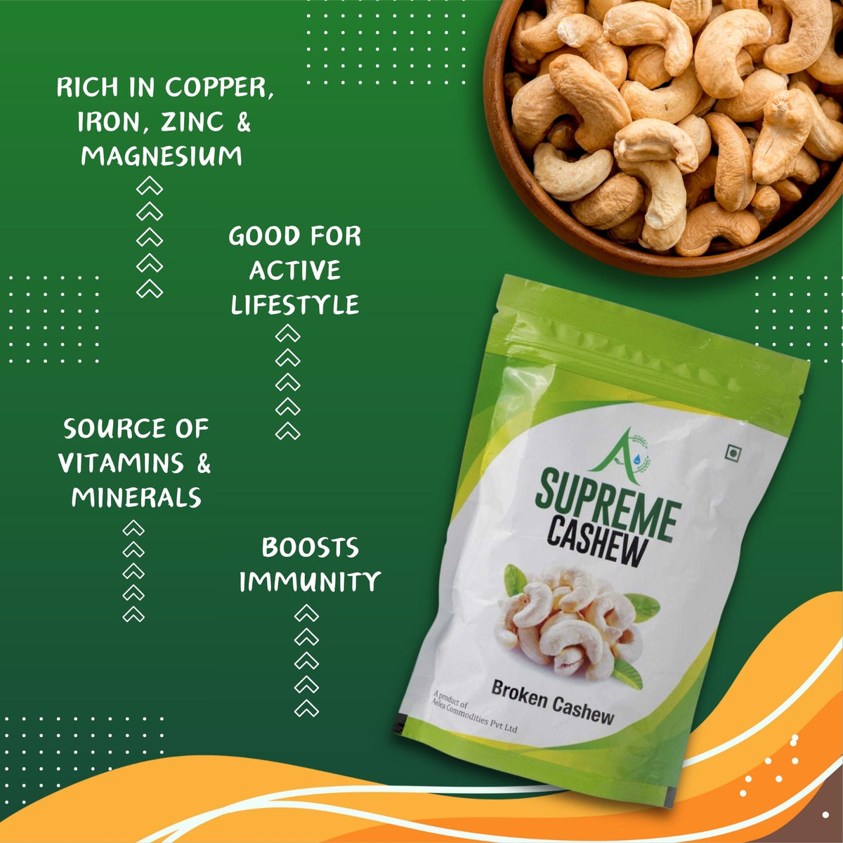• Premium cashews, broken into smaller